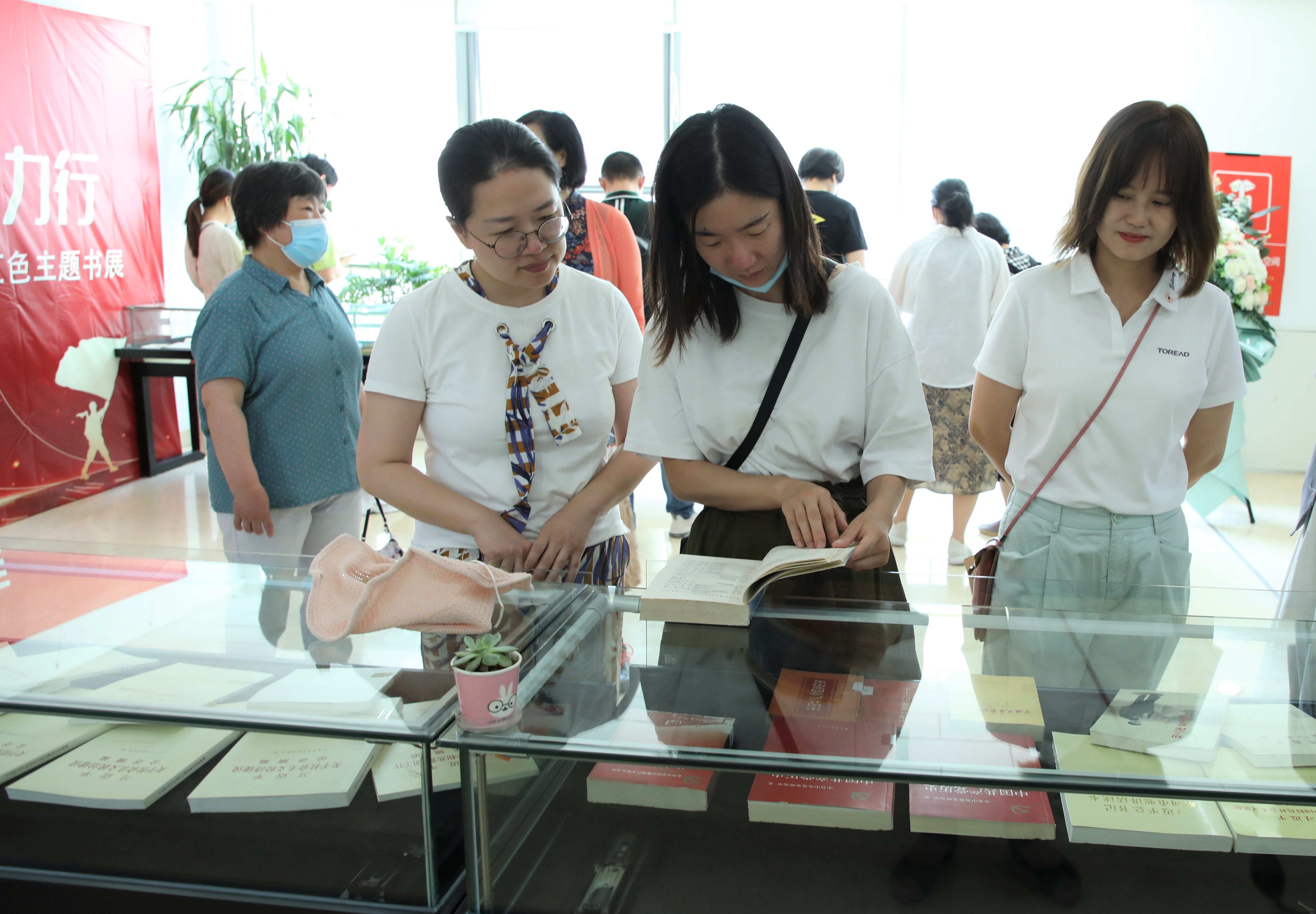 为庆祝中国共产党成立100周年,深入开展党史、新中国史、改革开放史、社会主义发展史学习教育,引导党员学史明理、学史增信、学史崇德、学史力行,2021年6月21日上午,北京大学外国语学院行政党支部组织全体党员参观了在外国语学院新楼地下一层展厅举办的“铭记党史守初心”红色主题书展。此次书展由北京大学外国语学院党委主办,外国语学院图书馆承办。学院党委委员、行政副院长张冬梅,行政党支部书记张琳娜等近20名党员参加了活动,参观书展的支部成员既包括在职教职工,也有早早从家中赶来的退休党员老师。