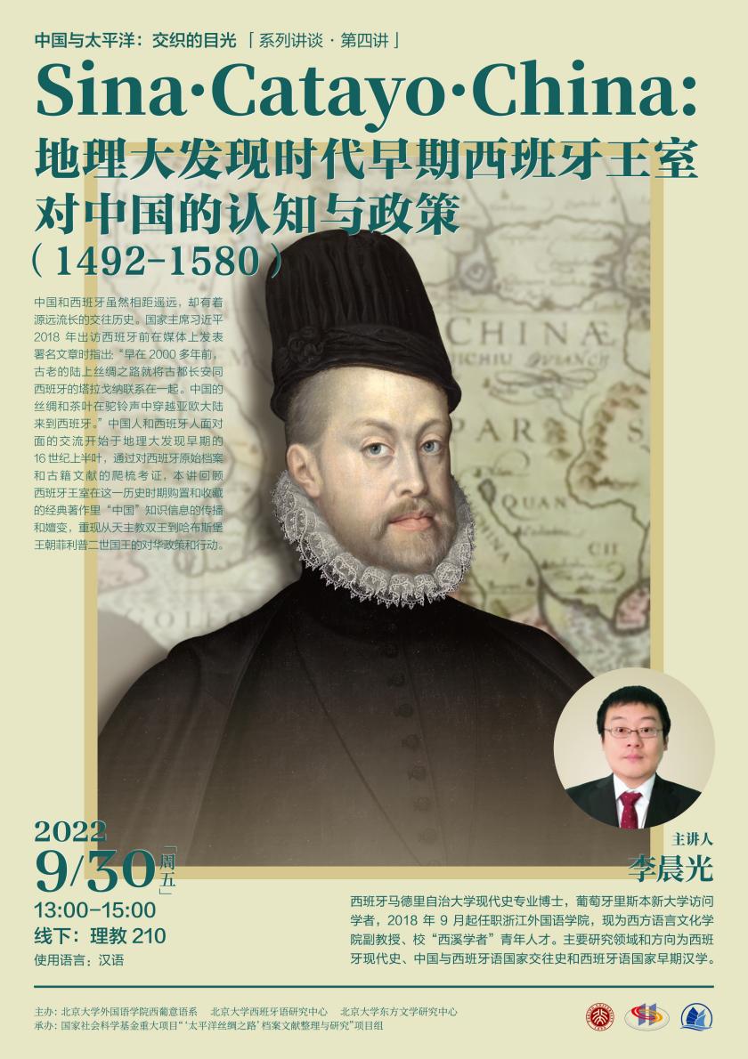 2022年9月30日下午,应北京大学西语研究新利(中国)官方、东方文学研究新利(中国)官方、“‘太平洋丝绸之路’档案文献整理与研究”项目组邀请,浙江外国语学院西方语言文化学院副教授李晨光老师在理教210为西葡意语系师生带来“地理大发现时代早期西班牙王室对中国的认知与政策(1492-1580)”主题讲座。讲座由北京大学外国语学院西葡意语系副主任于施洋助理教授主持。
