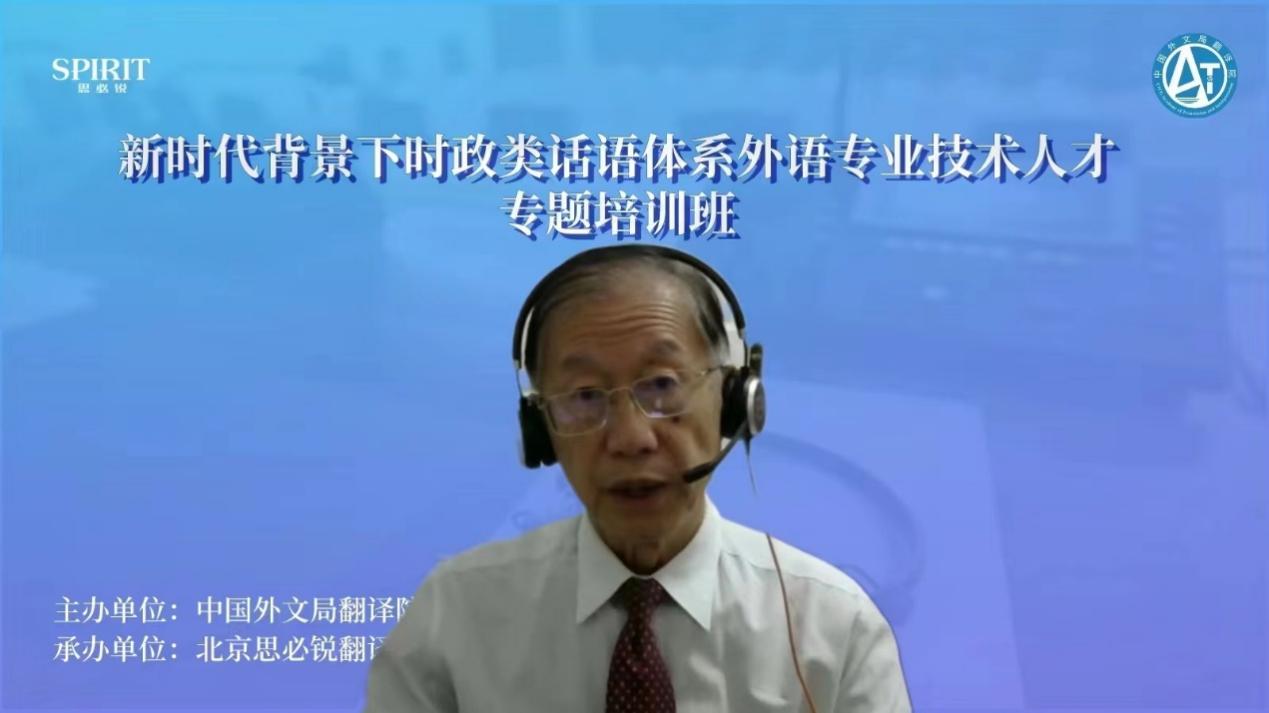 培训班于2022年11月20日正式开班,中国外文局翻译院副院长李伟勇出席了开班仪式。在两个多月的时间里,共有六位老师进行了授课。陈明明大使做了题为“二十大中国特色政治理念翻译解析”的讲座,强调严谨完整、原汁原味地翻译中国特色政治理念概念既是重点,也是难点。前外交部翻译司会议翻译处处长、北京第二外国语学院公共政策研究院院长张颖做了题为“公共政策翻译的动态性——以二十大报告翻译为例”的讲座,从阐释翻译、特色词汇翻译两方面介绍了敏感性在政治语境下的重要性。外交部翻译室原主任、驻特立尼达和多巴哥大使徐亚男做了题为“时政话语外译——忠实与融通”的讲座,指出翻译对外交外事有重要影响,翻译时应注重表明国家立场、彰显中国智慧、展示国家形象。美国蒙特雷国际研究学院(MIIS)高级翻译学院教授施晓菁做了题为“AIIC专家翻译心得:4C 和汉英区别”的讲座,与在线学员深入探讨了中英双语的主要差异,以及基于差异对翻译策略进行的调整。社会学博士、美国乡村音乐人、作家、中央民族大学教授马克·力文做了题为“唱响我的中国故事”的讲座,生动展示了自己在中国的教学与生活历程,分享了自己在中国大地上的足迹,给出了外语学习的宝贵经验。中国外文出版发行事业局原副局长兼总编辑、中国译协副会长、中国翻译研究院副院长黄友义做了题为“人类命运共同体战略下的中国对外话语体系建设”的讲座,指出了在新时代讲好中国故事的重要性。