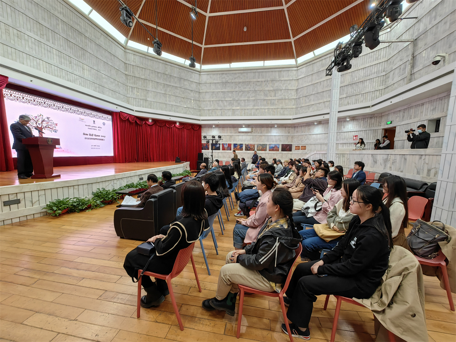 2023年3月31日下午,印度驻华大使馆举办“世界印地语日”庆祝活动,北京大学外国语学院南亚学系印地语专业师生代表应邀赴使馆参与活动。