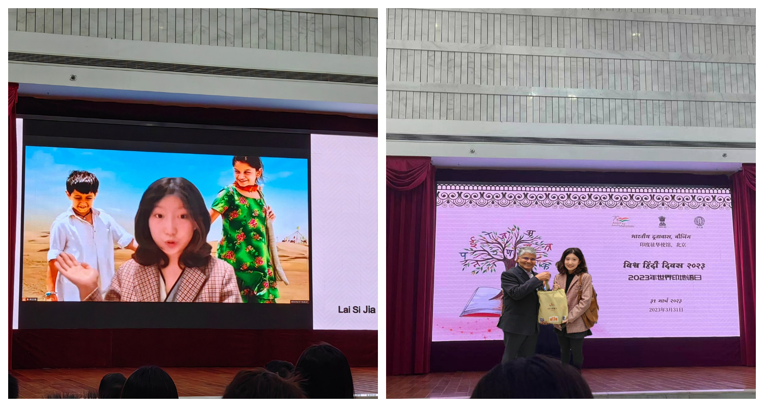 外院本科生嵇真妍、赖思嘉在印度驻华大使馆举办的2023年世界印地语日视频演讲比赛中取得佳绩