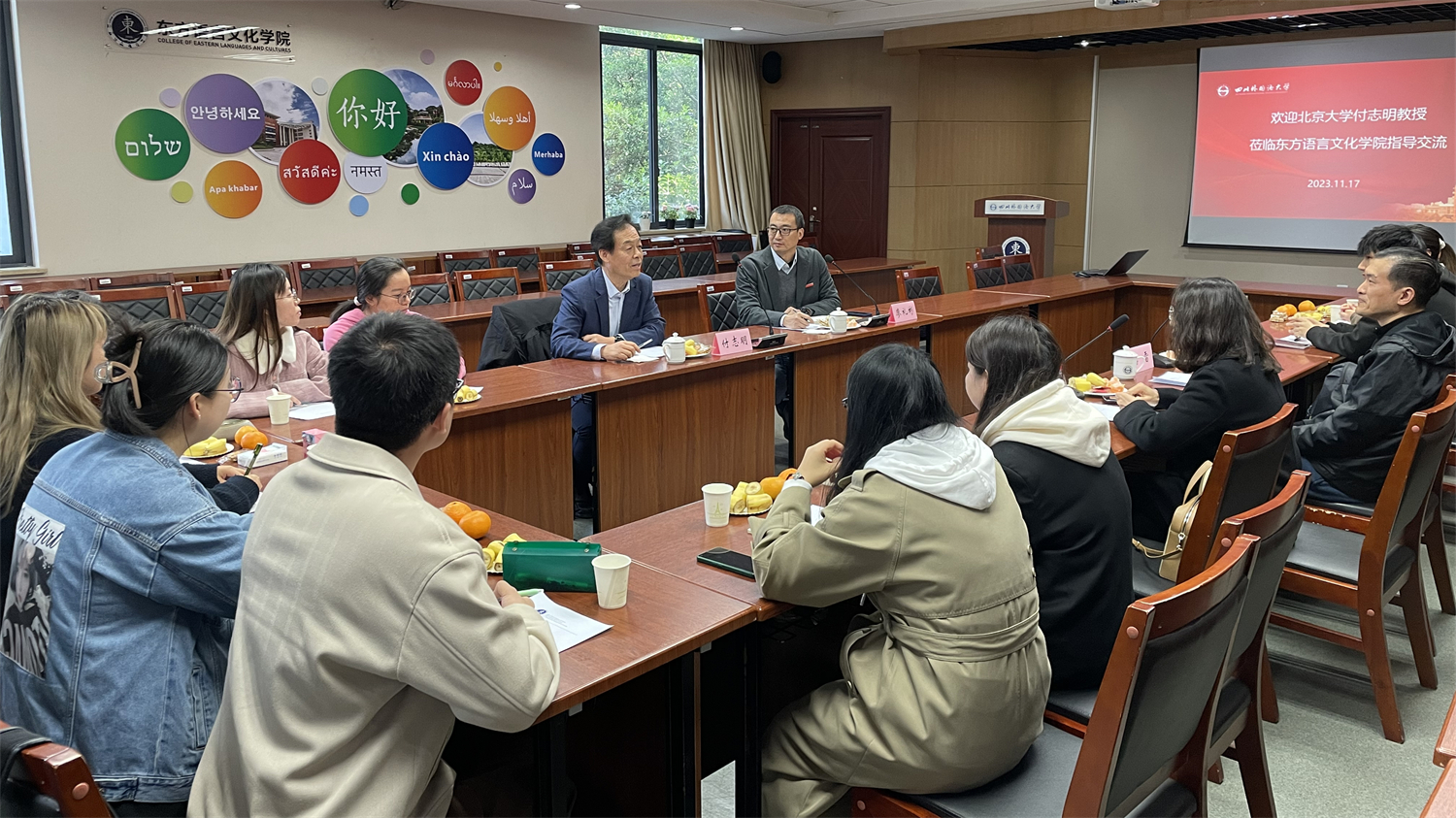 2023年11月15日至11月17日,北京大学外国语学院一行6人赴四川大学外国语学院、四川外国语大学、重庆外国语学校交流访问,就外语学科建设、人才培养等方面的工作经验进行调研交流。北京大学外国语学院副院长付志明带队,教务办主任张琳娜、副主任邵晓梅、教务人员李宁、李卉、雷洋随行。